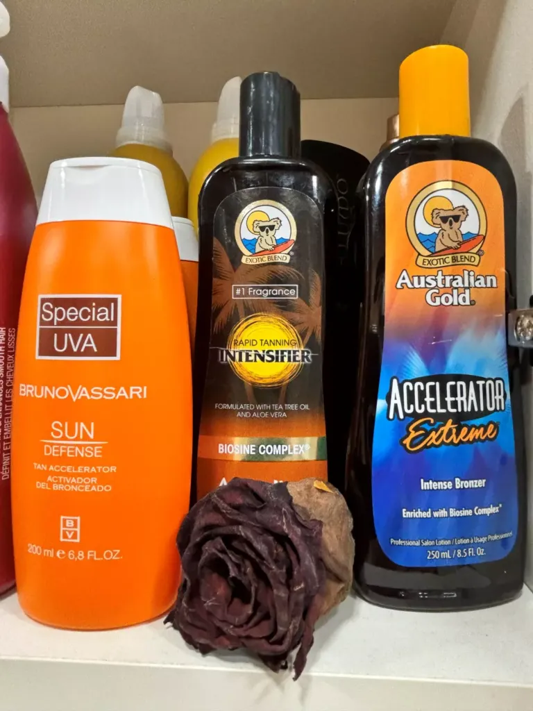 Disponemos de aceleradores de bronceado e hidratantes para antes y después de las sesiones de bronceado para cuidar el foto envejecimiento de la piel.